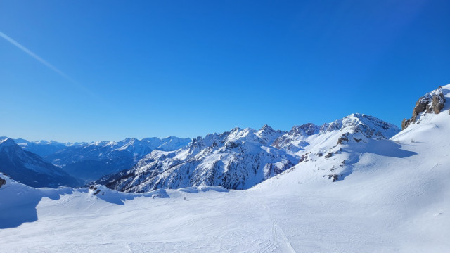 revêtus de leur manteau blanc bordés au loin par des sommets enneigés.