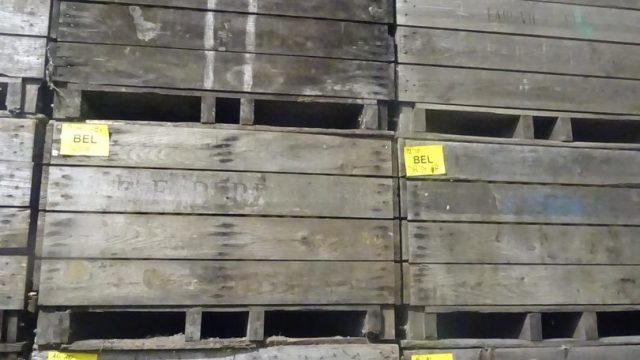 Les pommes cueillies à la main sont déposées dans un « palox » où elles resteront pour leur conservation en chambre froide.