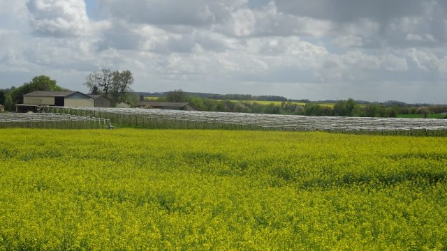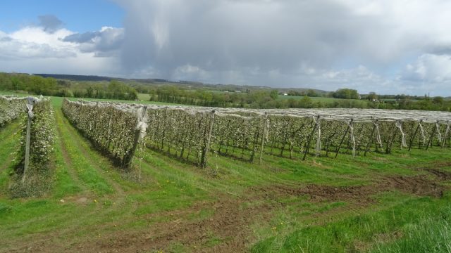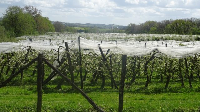 Nous quittons la forêt pour reprendre chemins et petites routes parmi les vergers.