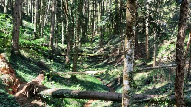 Notre longue file de marcheurs qui ne passa pas inaperçue dans le bourg, prit, en file indienne, la direction de la grotte de la pierre par une petite route montante et étroite. Après une pause à la grotte, poursuite de la marche pour arriver à la source du Goulet où est captée l’eau de Volvic. Après une halte où certains commencèrent déjà à quitter les vêtements chauds, nous empruntâmes, sur plusieurs kilomètres, le joli sentier boisé dénommé « Docteur Moity » en mémoire de ce maire de Volvic (de 1912 à1939) qui a œuvré pendant de nombreuses années à la réalisation de l’adduction d’eau pour alimenter Volvic et les villages environnants. Ce sentier en forêt passe au milieu d’anciennes carrières de pierre. Ce fut l’occasion d’évoquer l’extraction et l’exploitation de la pierre de Volvic.