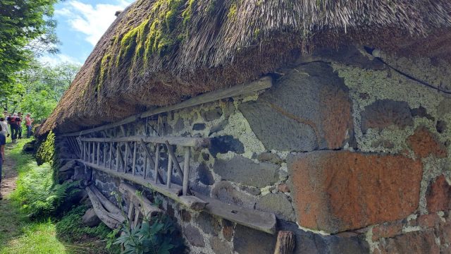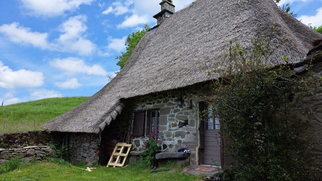 Nous longeons la ligne de chemin de fer (Clermont-Aurillac) et grimpons jusqu’au charmant village de Niervèze. Au moment où nous arrivons, un petit troupeau est changé de pâturages par trois personnes. Nous nous installons pour le pique-nique. Après la pause déjeuner, nous visitons les deux chaumières, le four, la fontaine et le « travail ». En montant dans le haut du hameau, nous avions une vue magnifique sur le Puy Griou.