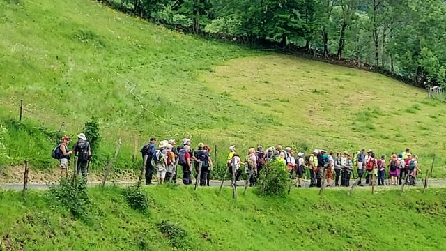 Nous traversons des pâturages où les vaches partagent les champs avec les randonneurs : beaux paysages fleuris et verdoyants.