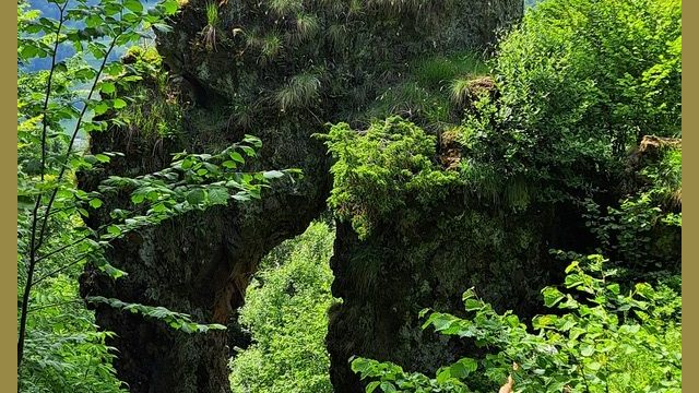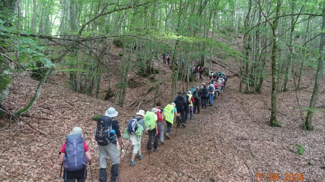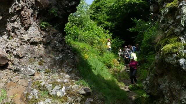 Nous continuons la rando par le Chaos de Casteltinet : très gros blocs de pierre détachés de la falaise et recouverts de mousse. De très grands arbres longent le parcours jusqu’à la Porte du Lion « à imaginer, certains y voient un éléphant…… et autres … ».