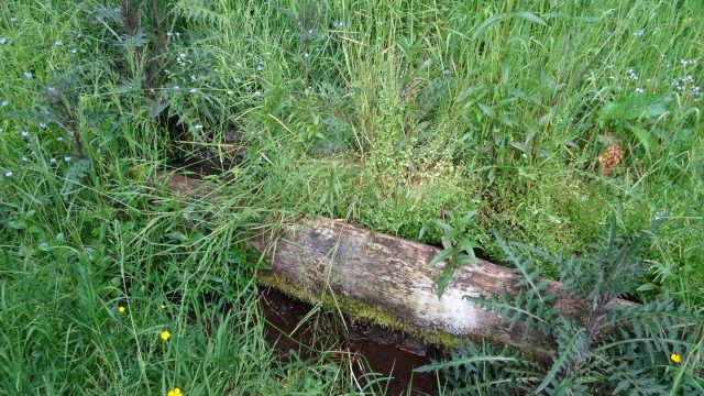 Avant de quitter le chemin pour s’engager sur une petite route on put voir les premières tourbières. Nous étions dans une zone assez humide avec de nombreux petits étangs. Les tourbières, exploitées par le passé ne le sont plus aujourd’hui.