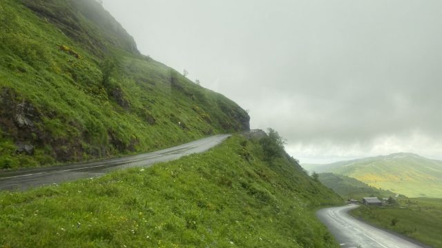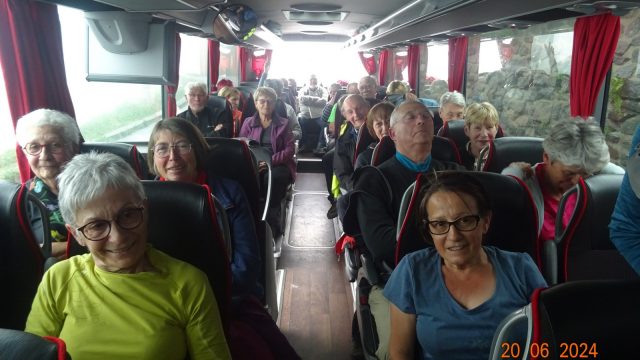 Ensuite départ du car vers le Puy Mary où nous envisageons de randonner. La montée en car sur la D680 est sinueuse et peu adaptée au passage de notre car ! Notre chauffeur Stéphane nous prouve tout son talent !