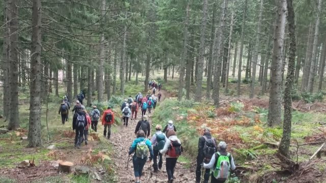 Par une belle journée d’automne, les randonneurs dans le parc régional du Livradois Forez