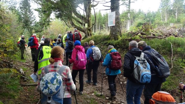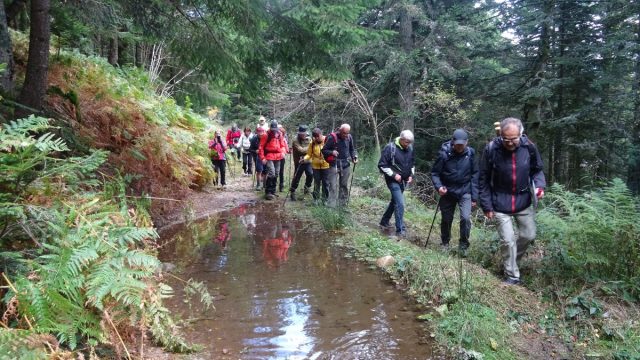La randonnée se termina par un large chemin forestier qui permit d’admirer les paysages où se mélangeaient le vert des conifères et les couleurs automnales des feuillus baignés par le soleil encore bien présent ainsi que la campagne verdoyante.