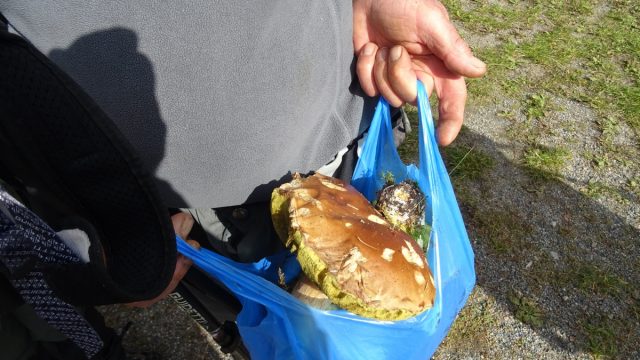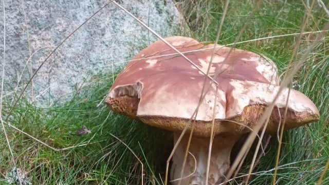 La rando se poursuivit dans la forêt par la descente d’un long sentier pendu et caillouteux qui demanda prudence et vigilance. Parfois il fut contourné en passant dans la forêt où le sous-bois couvert de mousse et de fougères dorées cachait de beaux champignons (cèpes, bolets…) que les connaisseurs ont pu cueillir, présenter au groupe et emporter pour les déguster.