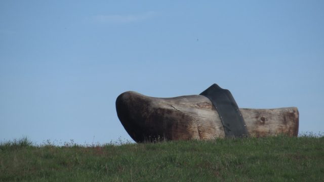 Nous traversons la route et continuons en passant près des vignobles, des domaines viticoles, notamment le Domaine SÉROL, et de la Saboterie DRIGEARD repérable à son sabot XXL.