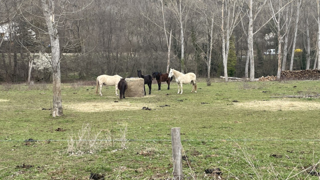 Arrivés au hameau isolé de Chazoux, un troupeau d’une quarantaine d’ânes de différentes races nous accueillit.