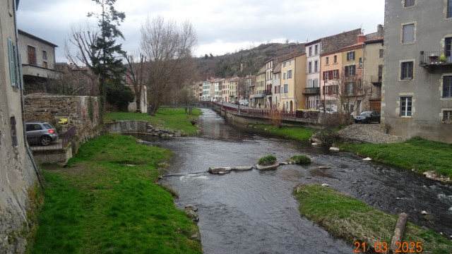 Une randonnée dans la vallée de la Couze Chambon avec un marché hebdomadaire traversé sans emplettes par nos randonneurs ; une rue montante à vue plongeante ; des caves voutées en pierres abandonnées ; les premières fleurs et les arbustes fleuris ; des sommets encore un peu enneigés ; une campagne vallonnée aux premières couleurs du printemps …