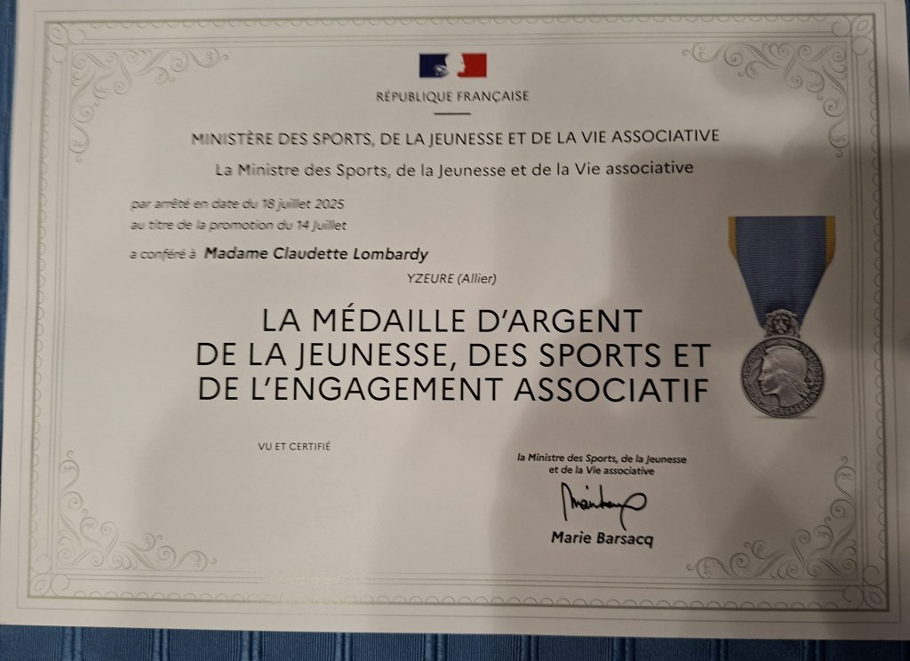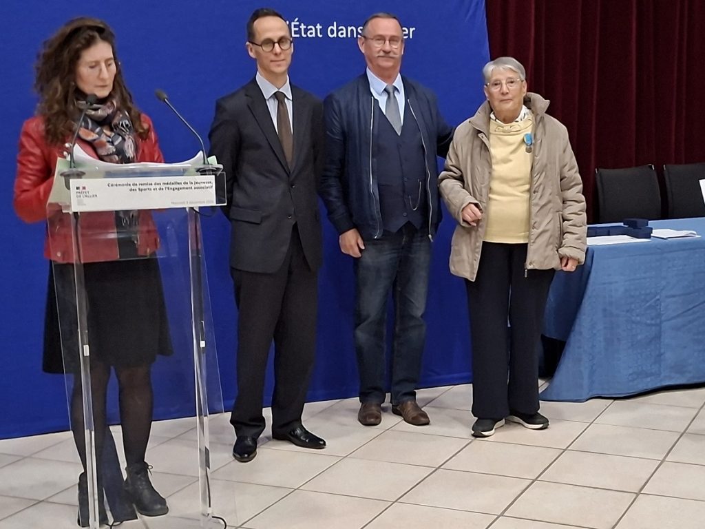 Attention, Claudette est une récidiviste ! Déjà titulaire de la médaille de bronze de la jeunesse, des sports et de l’engagement associatif, elle accède au grade supérieur, la médaille d’argent, qui récompense la poursuite de son action auprès du club depuis la distinction précédente. Evidemment, sa modestie habituelle lui a fait dire « pourquoi moi ? »
