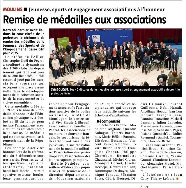 Attention, Claudette est une récidiviste ! Déjà titulaire de la médaille de bronze de la jeunesse, des sports et de l’engagement associatif, elle accède au grade supérieur, la médaille d’argent, qui récompense la poursuite de son action auprès du club depuis la distinction précédente. Evidemment, sa modestie habituelle lui a fait dire « pourquoi moi ? »