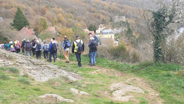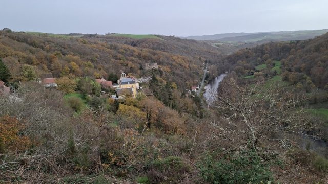 C’est donc par une journée automnale douce que nos randonneurs partirent à la découverte des gorges de la Sioule au débit soutenu en cette période pluvieuse (mais pas le temps de pêcher la truite), du Château de Chouvigny, des hauts de Chouvigny dominant la vallée avec de belles vues sur les gorges, le village et les monts environnants et aussi de lieux plutôt insolites.