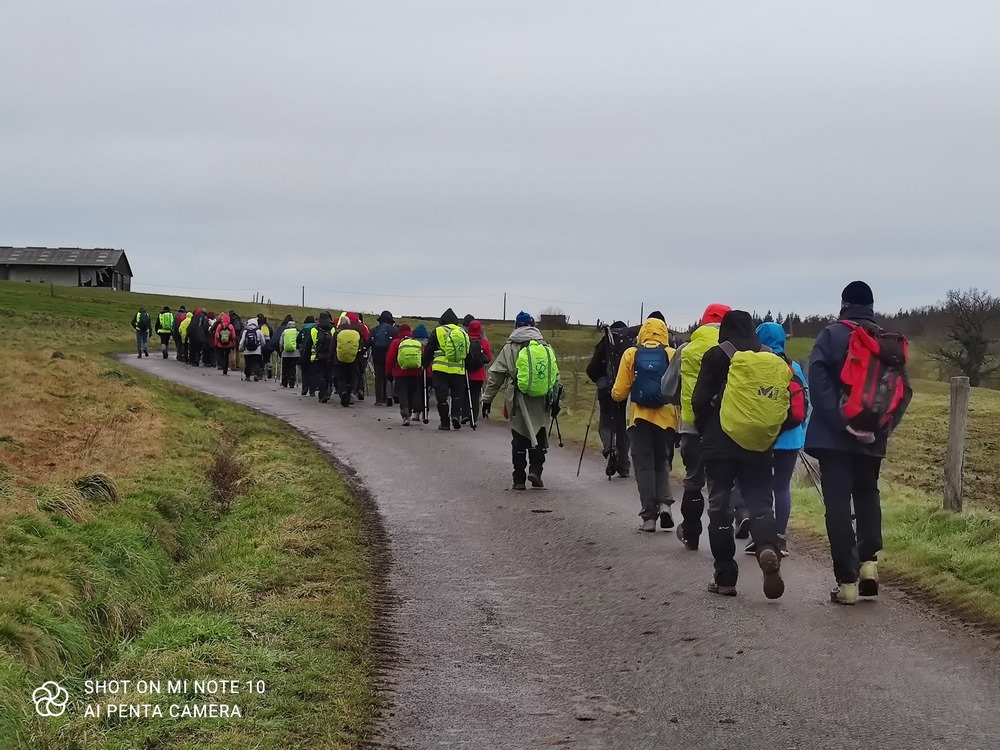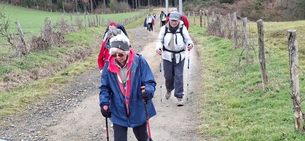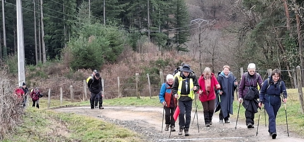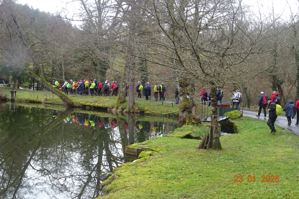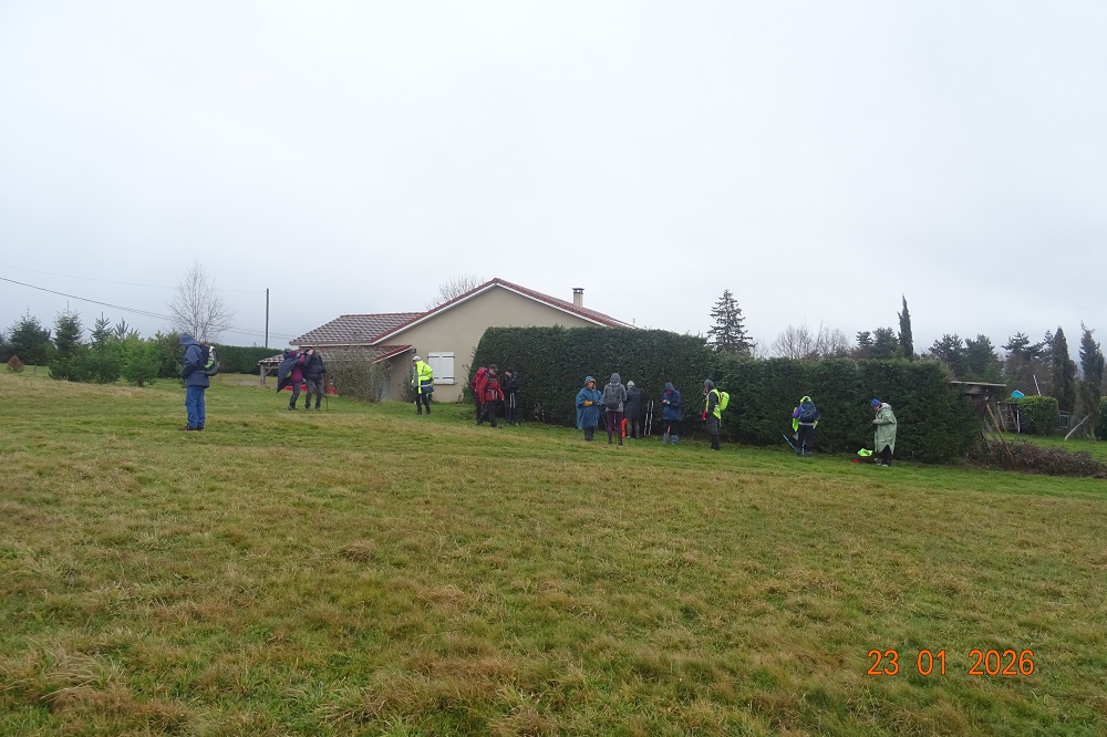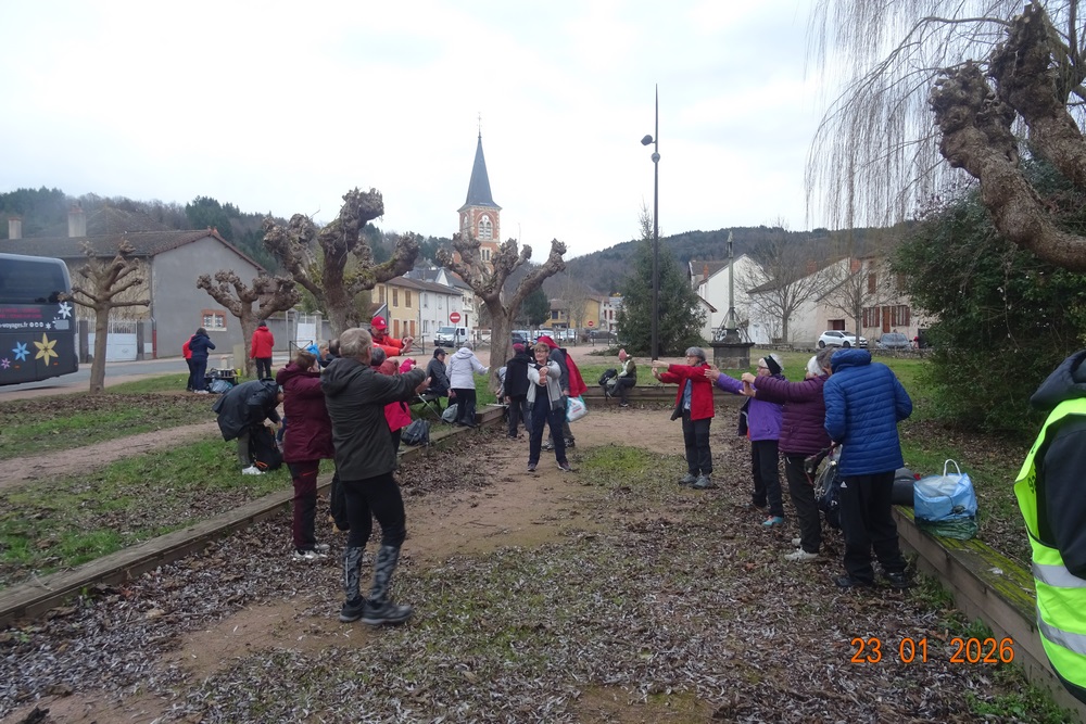 Pour cette première randonnée de l’année 2026 et 4ème de la saison, c’est à Mariol, petit village situé sur un sillon naturel de la Montagne Bourbonnaise et traversé par la rivière Allier et le ruisseau le Darot, que le bus emmène les 51 randonneurs du jour. Malgré une météo capricieuse, la motivation collective est bien là pour marcher à la découverte d’un parcours vallonné alternant sous-bois et prairies avec des paysages bucoliques et des belles vues sur le Val d’allier et les monts environnants. Capuchons et capes sont à portée de main. (Pour se protéger ou faire le mariole ?).