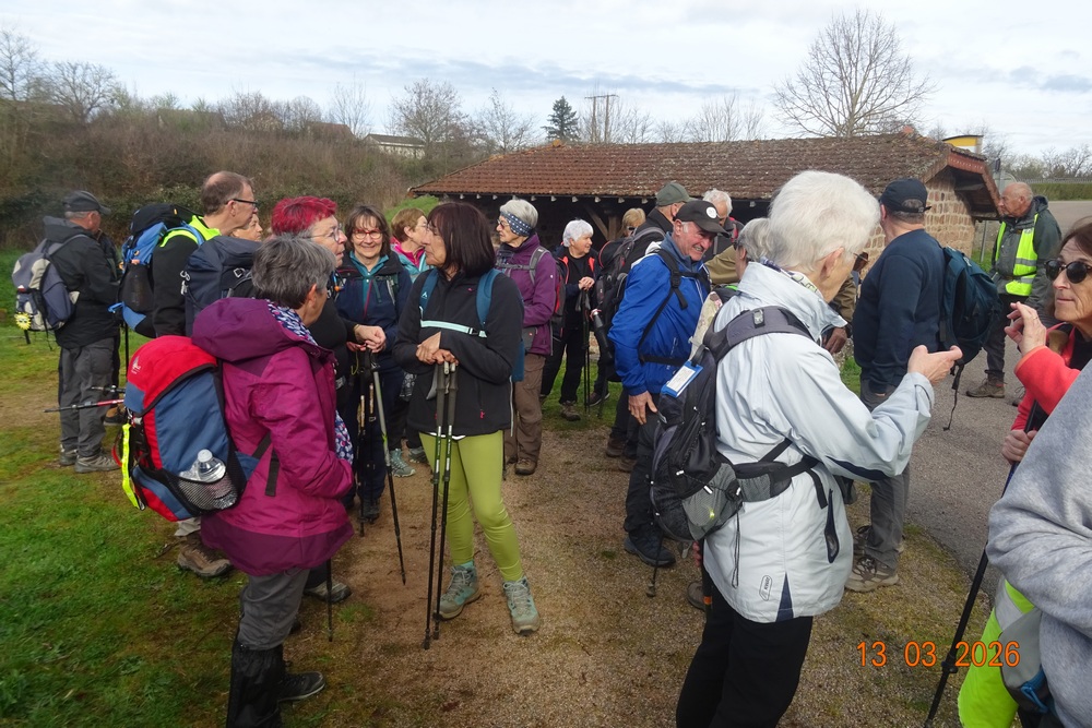 Le vendredi 13 mars 2026, c’est le charolais pays de bocage qui avait été choisi, pour cette randonnée à Verosvres entre Charolles et Macon. Ce vendredi 13 était-il jour de chance pour découvrir cette belle région de bocage avec ses prés verdoyants aux haies bien taillées et le magnifique point de vue de la butte de Suin à 360°.