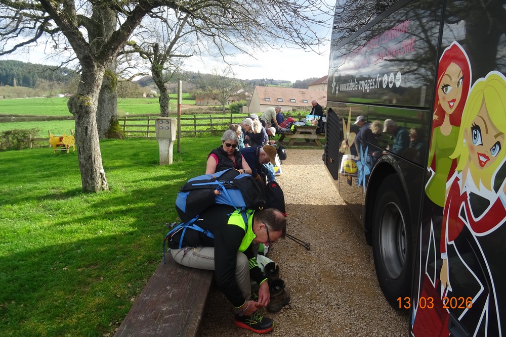 Le jour commençait à se lever sur Yzeure promettant une belle journée printanière. Les 44 randonneurs très ponctuels étaient tous présents et le bus conduit par Benoît parti à l’heure, direction la Saône et Loire.